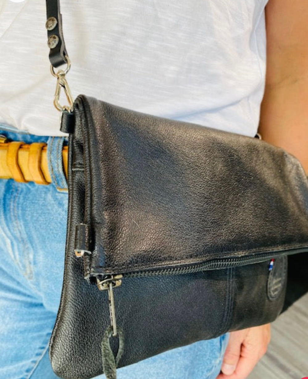 Sac bandoulière (bandoulière réglable) se portant de 2 manières différentes grâce aux mousquetons que l'on peut mettre à 2 endroits différents.