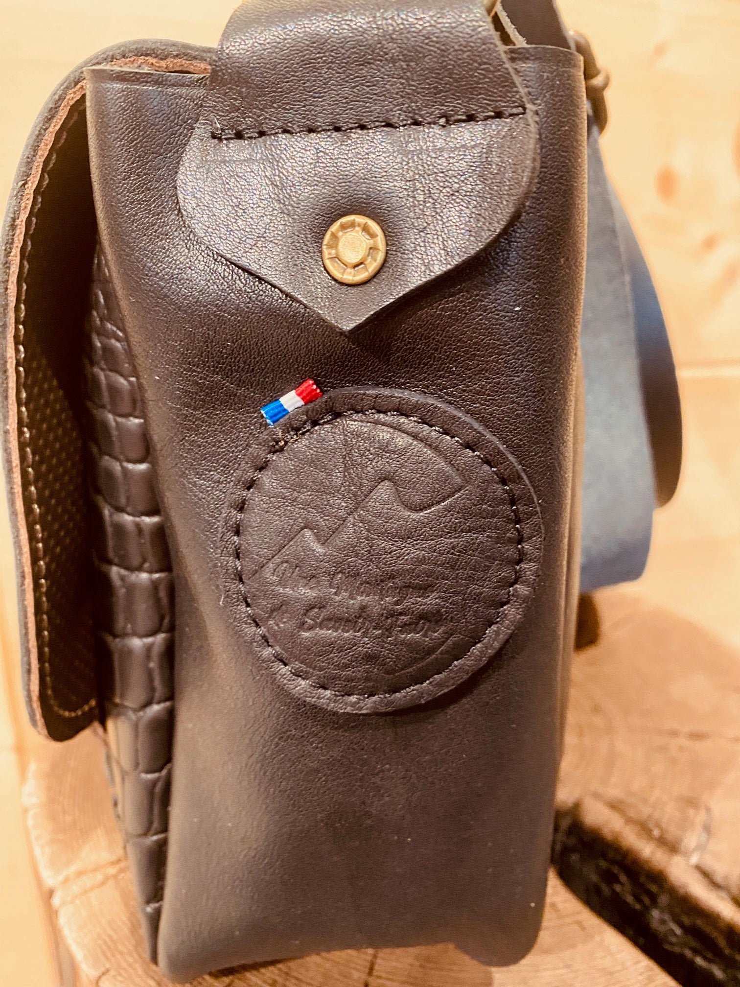 Sac de la gamme Ophélie en cuir de vache noir et or et cuir de vache imitation croco.
