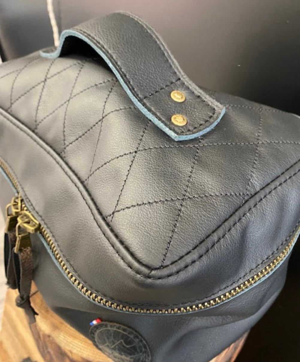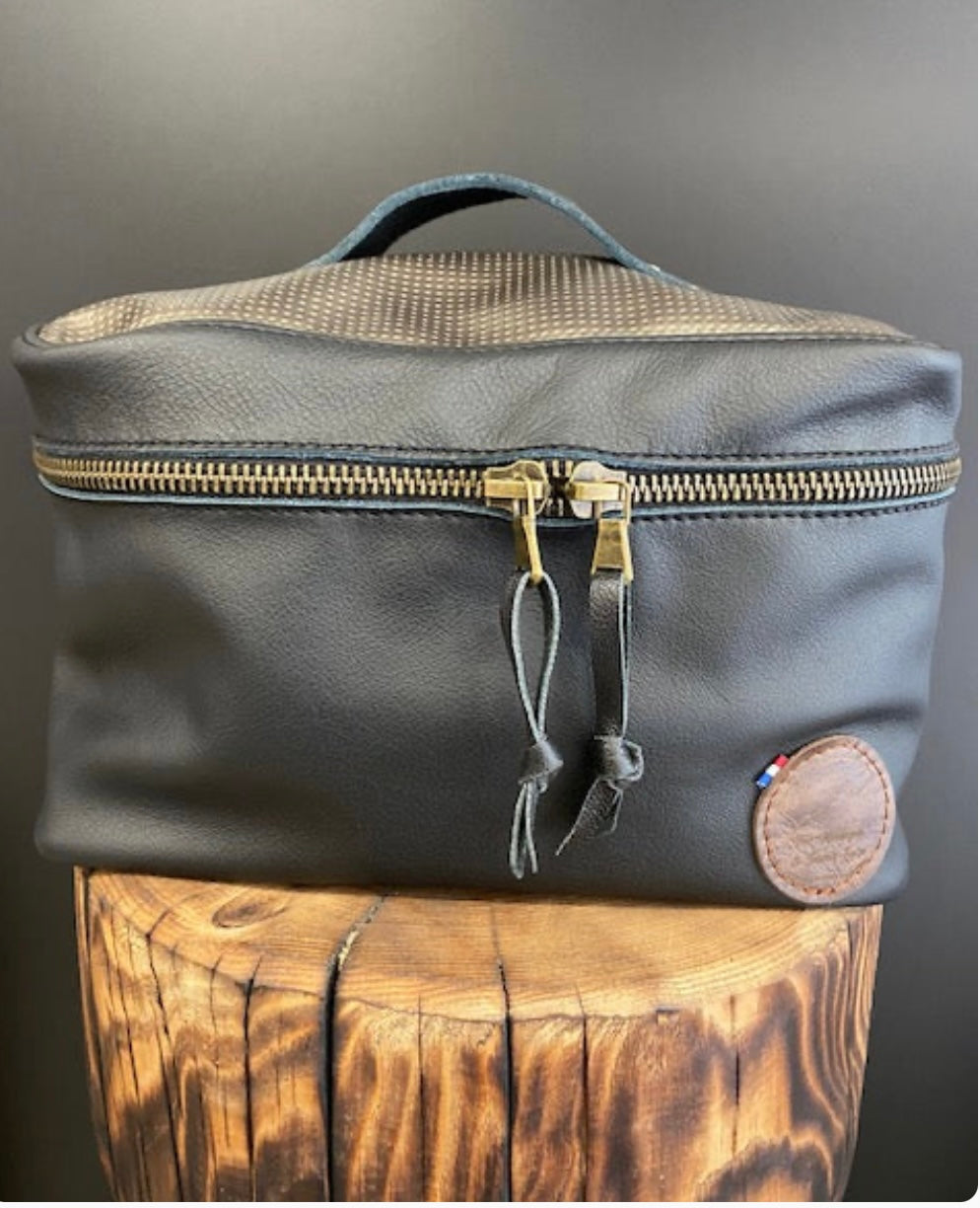Anse sur le dessus. très grande fermeture double pour une grande ouverture.